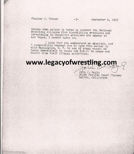 Promoter Johnny Doyle Letter to DOJ from 1955 - Page 3