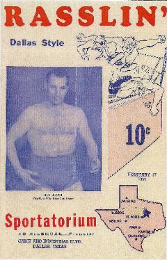 Dallas, Texas: Tuesday, January 6, 1953 (The Sportatorium) … World Heavyweight Champion Roy Dunn b. Jack Bernard (2-0) … “Gorgeous” George Grant b. “Nature Boy” Tommy Phelps (2/3) … Roy Graham and Jack O’Brien b. Gene Allbright and Jack Kennedy … The Elephant Boy b. Ken O’Connor … Mara Duba b. Johnny Dobbs … Bad Boy Brown and Bill Willis drew … (promoter: Ed McLemore) Dallas, Texas: Tuesday, January 6, 1953 (Pappy’s Showland) … NWA World Heavyweight Champion Lou Thesz b. Mr. Moto (2-0) … World Negro Champion Woody Strode b. Tex Grady (2-0) … NWA Texas Heavyweight Champion Cyclone Anaya b. Chief Kit Fox (2/3) … NWA Texas Women’s Champion Nell Stewart b. Ethel Waters (15:00) … NWA Texas Tag Team Champions Ray Gunkel and Ricki Starr b. Red Berry and Ted Christy (2/3) … (promoter: Norman Clark) (broadcast live on: WFAA-TV) (Channel 8) (all but main event) Note: National Wrestling Alliance President Sam Muchnick was in Dallas on Monday, and most likely attended the Tuesday night show. Dallas, Texas: Thursday, January 8, 1953 (The Sportatorium) … Roy Graham vs. Jack Kennedy (2/3) … Mara Duba vs. Jack O’Brien ... Johnny Dobbs vs. Bob Gurley … Jack Adkisson vs. Neal Farmer … Willie Love vs. Wilson Moton … (promoter: Maurice Beck) … (broadcast live on: WFAA-TV) (Channel 8) (all but main event) Dallas, Texas: Tuesday, January 13, 1953 (The Sportatorium) ... World Heavyweight Champion Roy Dunn b. Jack Kennedy (2-0) (second fall by DQ) ... Gene Allbert b. Johnny Dobbs (DQ) ... Jack Bernard b. Frank Altman ... Mara Duba and Ken O'Connor drew ... Jack Adkisson and Bill Willis drew ... Willie Love b. Bobby Gunter ... (promoter: Ed McLemore) ... (referee: Johnny Dobbs) Notes: Dunn's title reportedly came from a victory over Everette Marshall. Jack Kennedy also was said to have a win over Kennedy in Denver "several years ago." Duba was from Rio de Janiero. Adkisson was a former SMU and Crozier Tech High School football player. Willis was the "winner of the Mr. Texas physique contest." Dunn's main finisher was a flying front scissors. Dallas, Texas: Thursday, January 15, 1953 (The Sportatorium) ... Jack Kennedy b. Jack O'Brien (2/3) ... Johnny Dobbs and Nature Boy drew ... Mara Duba b. Bob Gurley ... Neal "Buddy" Farmer b. Sammy Baldwin ... Joe Marlow b. Jack Adkisson (DQ) ... (promoter: Maurice Beck) ... (400 fans) Dallas, Texas: Tuesday, January 20, 1953 (Pappy’s Showland) … 14 Wrestler Tournament won by Al Costello … Ted Christy vs. Cyclone Anaya … Gypsy Joe vs. Scotty Williams … Leo Newman vs. Ricki Starr … Ray Gun vs. Mr. Moto … Dory Funk Sr. vs. Alo Leilani … Al Costello vs. Gory Guerrero … Chief Kit Fox vs. Bull Curry … (promoter: Norman Clark) … (matchmaker: Dr. Karl Sarpolis) Notes: The winner of the tournament was going to wrestle Gorgeous George on January 27. Curry was a former policeman in Boston. Dallas, Texas: Tuesday, January 20, 1953 (The Sportatorium) … World Heavyweight Champion Roy Dunn vs. Jack Kennedy (2/3) … Jack Bernard vs. Big Humphrey Pennyworth … George Hubert vs. Ken O’Connor … Johnny Dobbs vs. Bill Dusin … Mara Duba vs. Joe Marlowe … (promoter: Ed McLemore) Notes: Dusin was making his Dallas debut. Marlowe was from Irving. Pennyworth took his name “from a character in the Joe Palooka comic strip.” Dallas, Texas: Thursday, January 22, 1953 (The Sportatorium) … Jack Kennedy and Tommy Phelps wrestled to a double countout (1- 1) … Bob Gurley and Jack O’Brien drew … Mara Duba b. Bill Dusin … Johnny Dobbs b. Sam Baldwin … Gene Allbert b. Jack Adkisson … (promoter: Maurice Beck) Dallas, Texas: Tuesday, January 27, 1953 (Pappy’s Showland) … Gorgeous George b. Al Costello (2/3) … Mr. Moto b. Alo Leilani … Ricki Starr b. Dory Funk Sr. (DQ) … Cyclone Anaya and Jackie Nichols drew … Chief Kit Fox b. Howard Cantonwine … Wilson Moton b. Emerson Crozier … (promoter: Norman Clark) … (benefit for the March of Dimes) Notes: The Dallas Morning News (1/23/53) stated that “each wrestler on the evening’s card will entertain the fans during intermissions with songs and special numbers as their part in the March of Dimes program.” Clark’s office was at the White-Plaza Hotel in Dallas. Moton was from Oklahoma and Crozier from Dallas. Dallas, Texas: Tuesday, January 27, 1953 (The Sportatorium) … Roy Dunn failed to throw both Sky-High Ross and George Hubert in 45:00 (Dunn beat Ross in 25:00, but failed to beat Hubert) … Bill Dusin and Jack O’Brien b. Elephant Boy and Nature Boy (Tommy Phelps) … Johnny Dobbs and Jack Kennedy drew … Mara Duba b. Jack Adkisson … Rudy Soda b. Bill Willis … (promoter: Ed McLemore) … (benefit for the March of Dimes) Notes: McLemore’s 14th anniversary as a wrestling promoter in Dallas. It was his fifth March of Dimes show. His 1952 program donated $11,500 from donations by television and radio listeners of his wrestling shows. Sky-Hi Ross was said to be 6’8” tall. Dallas, Texas: Thursday, January 29, 1953 (The Sportatorium) … Tommy Phelps b. Jack Kennedy (2/3) … Johnny Dobbs and Neal Farmer b. Sammy Baldwin and Al Foreman … Mara Duba and Bob Gurley drew … Sammy Baldwin b. Neal Farmer … Jack Adkisson b. Al Foreman … Gene Allbert b. Chico Rodriguez … (promoter: Maurice Beck) … (referee: Roy Carter) Dallas, Texas: Tuesday, February 3, 1953 (Pappy’s Showland) … Alo Leilani vs. Mr. Moto … Chief Kit Fox and Ricki Starr vs. Dory Funk Sr. and Leo Newman … Big Humphrey vs. Ted Christy … Bull Curry vs. Billy Varga … Al Costello vs. Cyclone Anaya … (promoter: Norman Clark) Notes: Gunkel was said to be one of the “top five wrestlers in the nation.” Leilani was a former Colorado A&M athlete. Humphrey was a redhead who weighed 300 pounds. Gunkel refereed the main event. Moto’s second, “Fuji,” was barred from ringside. Dallas, Texas: Tuesday, February 3, 1953 (The Sportatorium) … Chief Lone Eagl